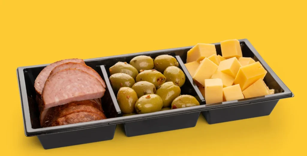 Grill worst, pittige knoflook olijven, jong belegen Stompetoren kaas